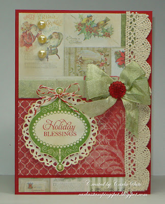 I am well on my way to finishing my Christmas cards, so I stayed with that theme for my card. I used one of my favorite Heartfelt Creations images from