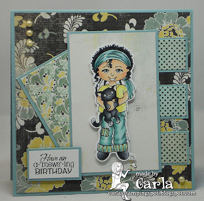 This is adorable. I love this image and love the way you colored her, so beautiful. You did a fantastic job on this card Carla.
