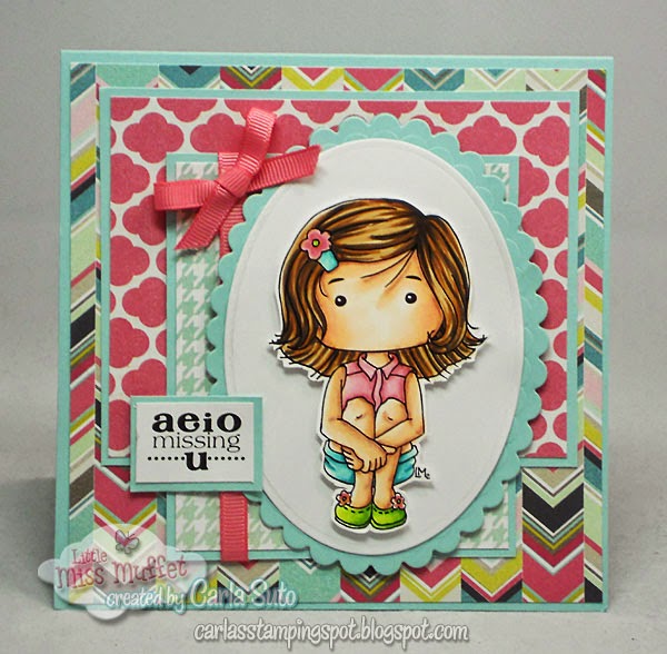 My card base and mats are SU Pool Party and the patterned papers are from the My Mind's Eye Cut & Past "Adorbs" 6x6 pad. The adorable image is Polka Dot Pals Brooke from Little Miss Muffet Stamps. I colored her with my Copics then cut her out and popped her up. The sentiment is from Create With TLC. A simple little bow finished my card.